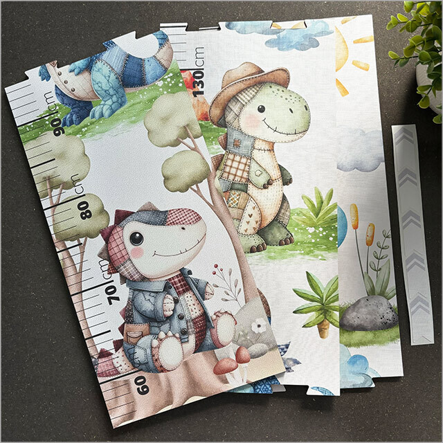This growth chart will capture your child's growth throughout the years, kept company by a series of gorgeous, denim-wearing dinosaurs.