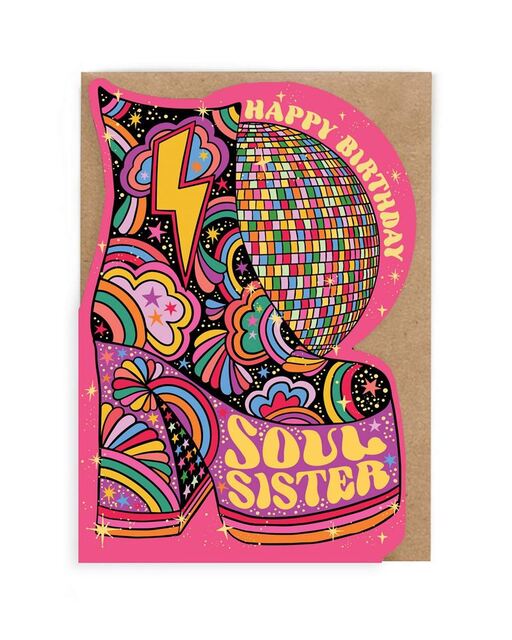Our Soul Sister Card is rich in vibrant colour and psychedelic illustrations; the perfect mix of retro designs with a contemporary feel. Made in collaboration with artist Lisa Robson.