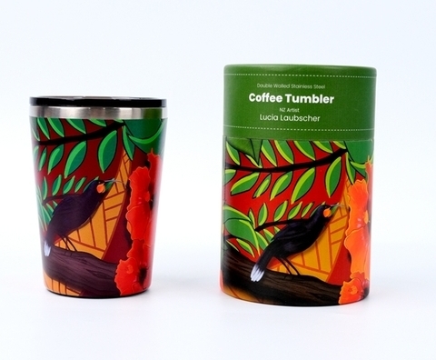 Made from food grade double walled stainless steel and decorated with beautiful art work featuring the huia, this mug makes a great gift.