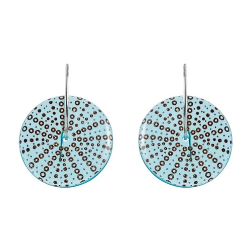Stone Arrow Kina earrings made from recycled blue glass gin bottles. The distinctive kina shell pattern is instantly recognisable in this fun and funky design.