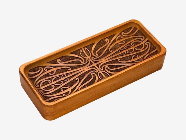 Crafted from recycled native New Zealand timber, this elegant ring/trinket dish features an intricate engraving inspired by the timeless art of Tā Moko.