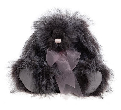 Moonbeams is ready to hop right into your heart. Moonbeams is crafted from soft, dense, long dark grey plush with white tipping, giving her a unique and endearing appearance. She has a hand-embroidered pink nose and wears an organza bow around her neck to match. She has the sweetest, long and soft lop ears and gives the best cuddles. Recommended for ages 3 years+. Rabbit height: 38cm/15”/12.7 Bear Paws.