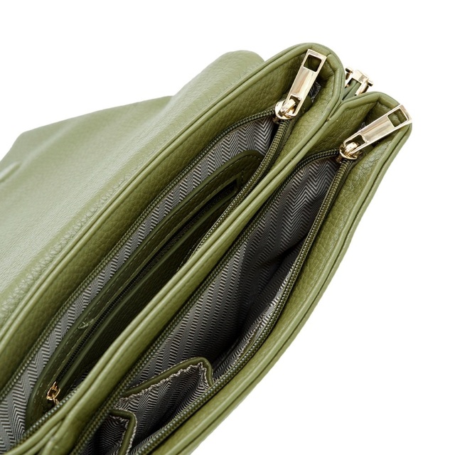 Made from PU leather (pleather) this smart handbag is great as a crossbody option, or a classy clutch. Lift the flap, which is held in place with magnets, and you'll find two generous zipped compartments. One compartment has another small zippered pocket and the other has two small open pockets. The adjustable shoulder strap is removable.