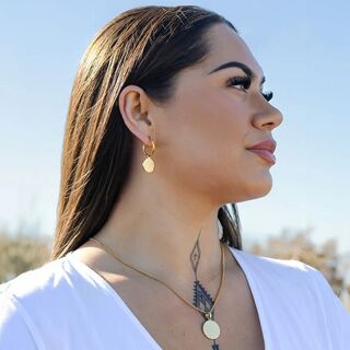 Small gold-plated stud earrings with Tino Rangatiratanga (Māori flag) imprinted on the circular face.